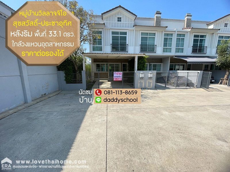 ขายทาวน์โฮม 2 ชั้น หมู่บ้านวิลลาจจิโอ สุขสวัสดิ์-ประชาอุทิศ พื้นที่ 33.1 ตารางวา หลังริม อยู่ซอยแรกของโครงการ ราคาต่อรองได้