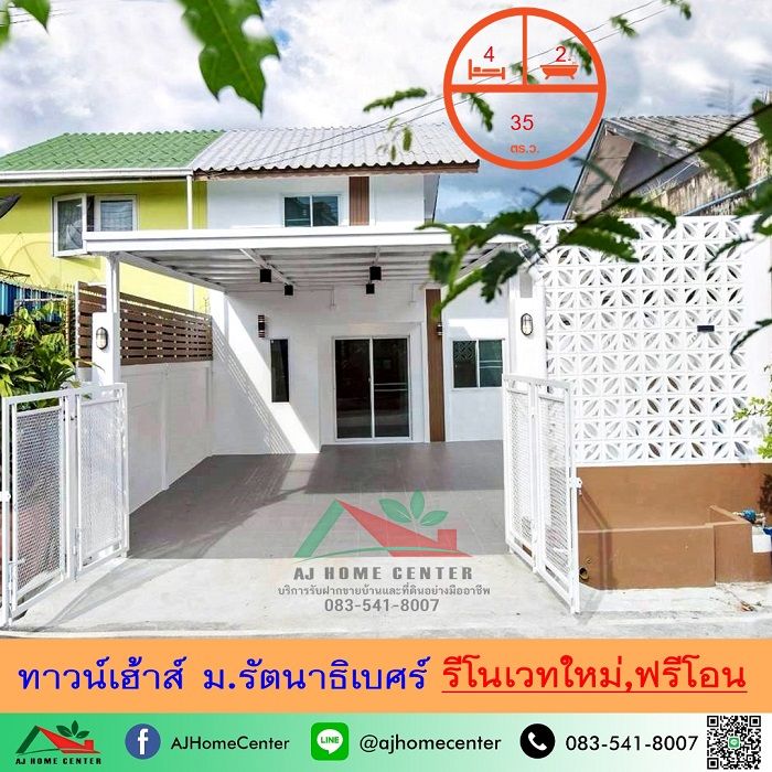 ขายทาวน์เฮ้าส์2ชั้น 35ตรว. ม.รัตนาธิเบศร์ รีโนเวทใหม่ ฟรีค่าโอน