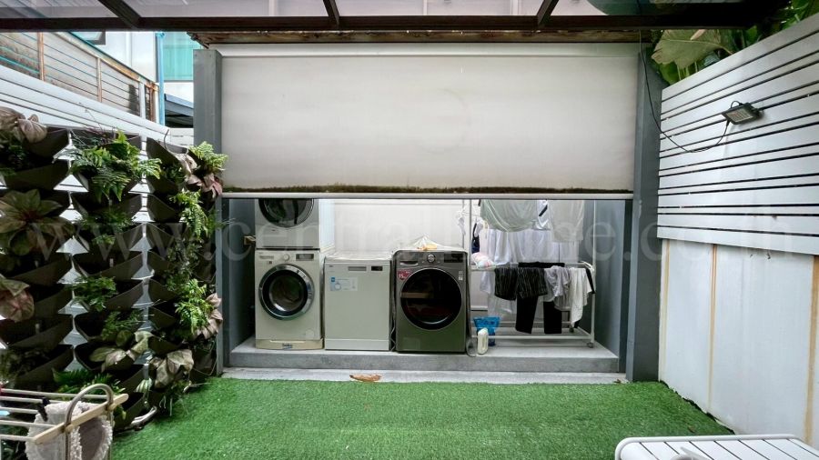 - ห้องวางเครื่องซักผ้า เครื่องอบผ้า และเครื่องล้างจาน พร้อมม่านม้วนจาก Wind Decore