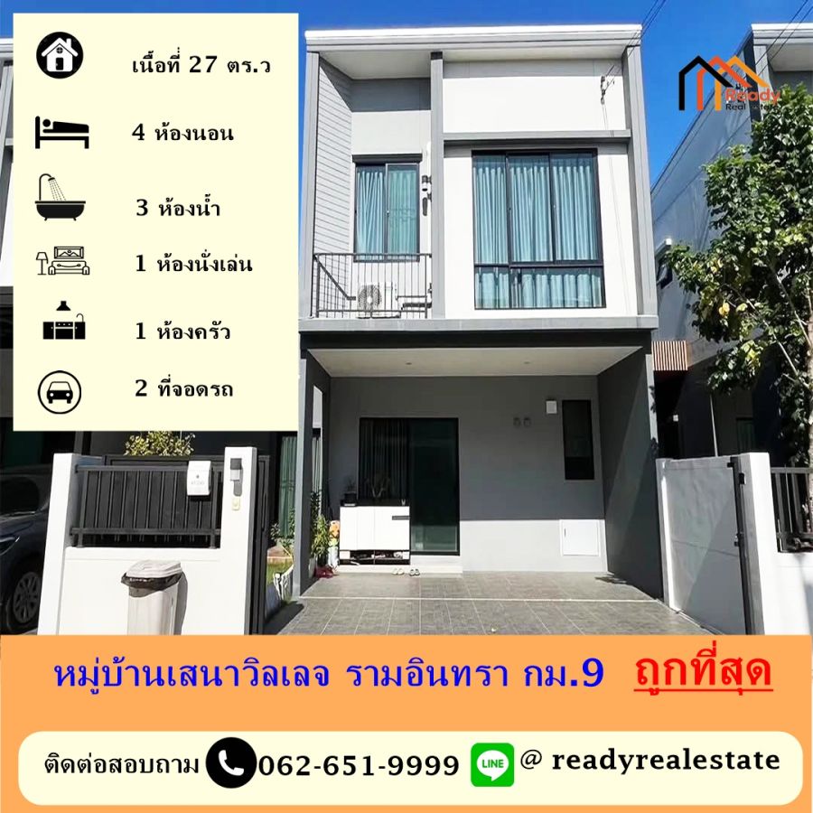 ขายถูกสุดทาวน์โฮม 2 ชั้น เนื้อที่ 27 ตร.ว. หมู่บ้านเสนาวิลเลจ รามอินทรา กม.9 (เลียบวงแหวนกาญจนาภิเษก) พร้อมอยู่