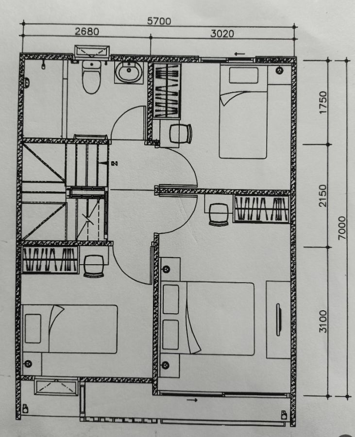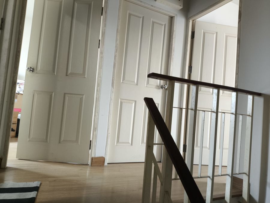 -ชั้นบน : พื้นปูด้วยลามิเนต มี 3 ห้องนอน, 1 ห้องน้ำ,