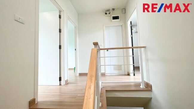 พื้นที่ชั้นสองกว้างขวาง พร้อมแสงธรรมชาติ พื้นเป็นไม้ลามิเนตหนา 8 มม. พร้อมโถงบันไดที่มีช่องแสงธรรมชาติ ให้แสงสว่างโดยไม่ต้องเปิดไฟในช่วงกลางวัน ประหยัดพลังงานและเพิ่มบรรยากาศอบอุ่นภายในบ้าน