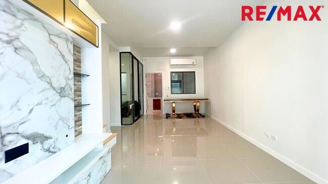 พื้นที่นั่งเล่นพร้อมตกแต่งสวยงาม ภายในบ้านบริเวณห้องนั่งเล่นตกแต่งเรียบหรูด้วยตู้วางทีวีบิวท์อินลายหินอ่อนสีขาว มอบให้พร้อมบ้าน เพียงนำโซฟาเข้ามาวางก็พร้อมเป็นพื้นที่พักผ่อนของครอบครัว
