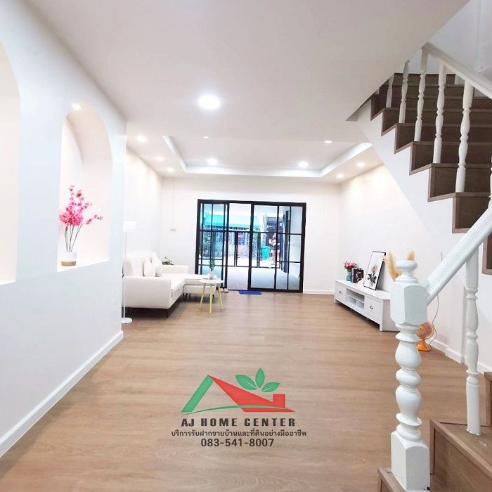 - วัสดุปูพื้น : ชั้นล่าง-แกรนิตโต้ลายหินอ่อน / ชั้นบน-ลามิเนต