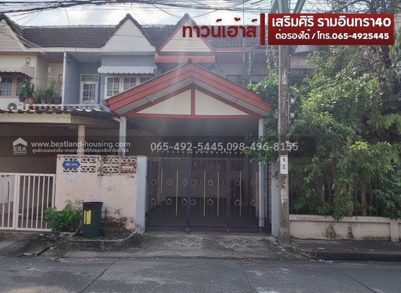 ขาย ทาวน์เฮ้าส์ 2 ชั้น 18 ตรว. ม.เสริมศิริ รามอินทรา40 แขวงนวลจันทร์ บึงกุ่ม ทำเลดี เดินทางสะดวก ใกล้ทางด่วนเอกมัย-รามอินทรา ต่อรองได้