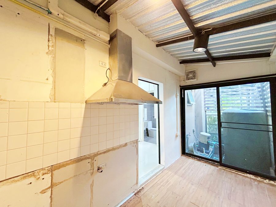 • ส่วนครัวหลังบ้าน ต่อเติมหลังคา บิ้วอินครัวเรียบร้อย แถมเครื่องดูดควัน เตาไฟฟ้า พร้อมใช้งาน
