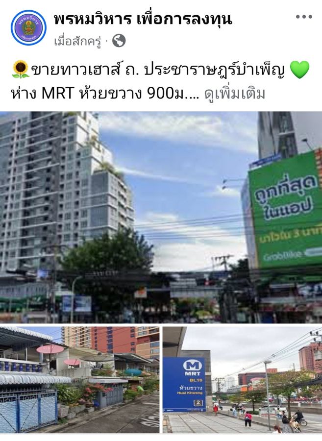 🌻ขายทาวเฮาส์ ถ. ประชาราษฎร์บำเพ็ญ 💚ห่าง MRT ห้วยขวาง 900ม.