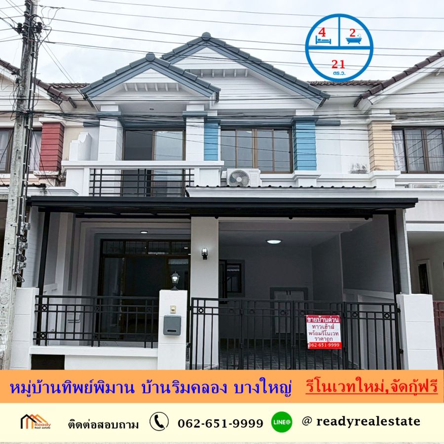 ขายทาวน์เฮ้าส์ 21 ตร.ว หมู่บ้านทิพย์พิมาน บ้านริมคลอง บางใหญ่ รีโนเวทใหม่สวย พร้อมอยู่ จัดกู้ฟรี