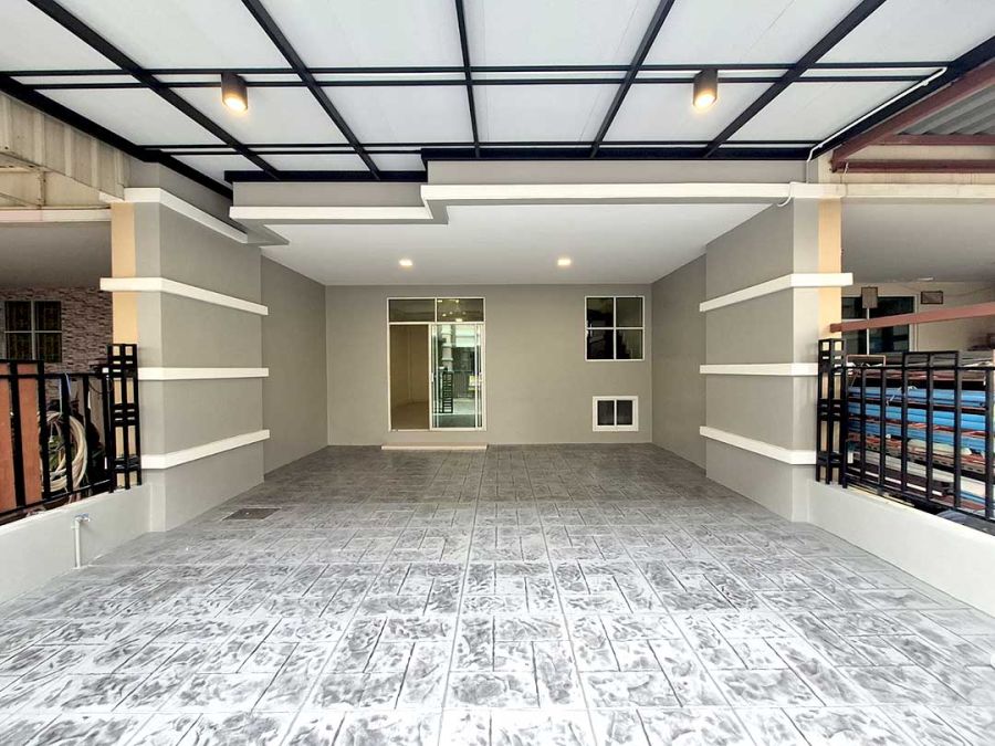 • ต่อเติมหลังคาที่จอดรถ หน้าบ้านเรียบร้อย