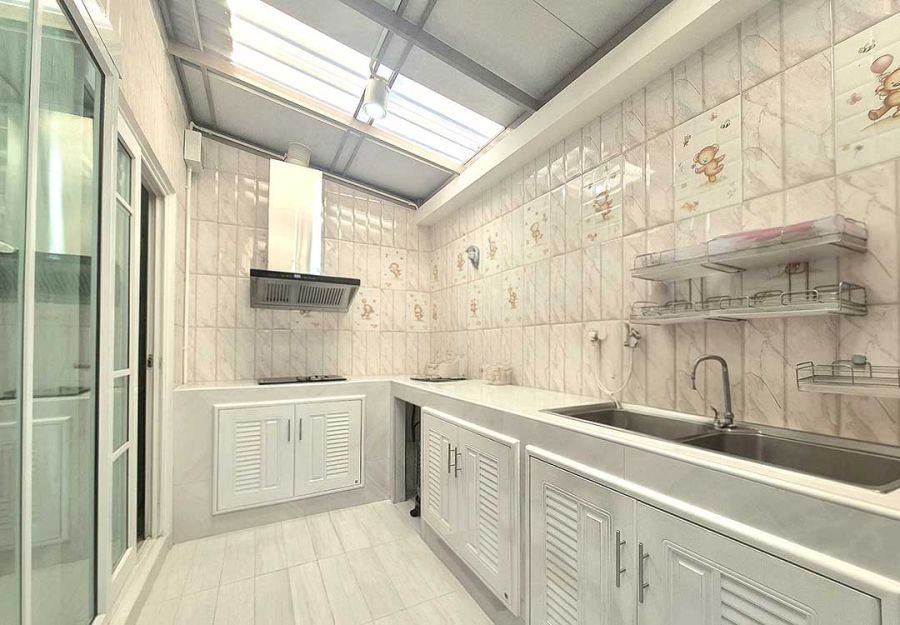 • ต่อเติมห้องครัว และก่อเคาวเตอร์ครัว (กว้าง 5.5 เมตร x ลึก 2 เมตร)