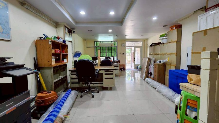 ชั้น 1: ห้องโถงกว้าง (พื้นกระเบื้องแผ่นใหญ่), 1 ห้องน้ำ, ห้องครัวขนาดใหญ่, และห้องเก็บของ