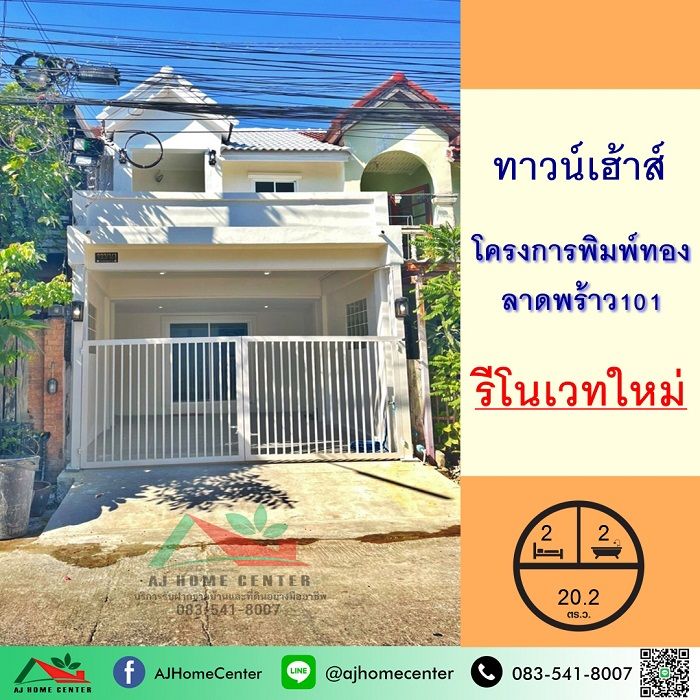 ขายทาวน์เฮ้าส์20.2ตรว. ม.พิมพ์ทอง ลาดพร้าว101 รีโนเวทใหม่ แต่งสไตล์มูจิ จัดกู้ฟรี