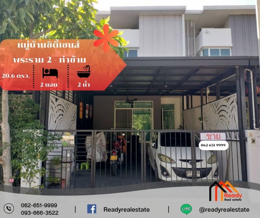 ขาย 2.7 ล้าน ทาวน์เฮ้าส์ 2 ชั้น 20.6 ตร.ว หมู่บ้านซิตี้เซนส์ พระราม 2-ท่าข้าม