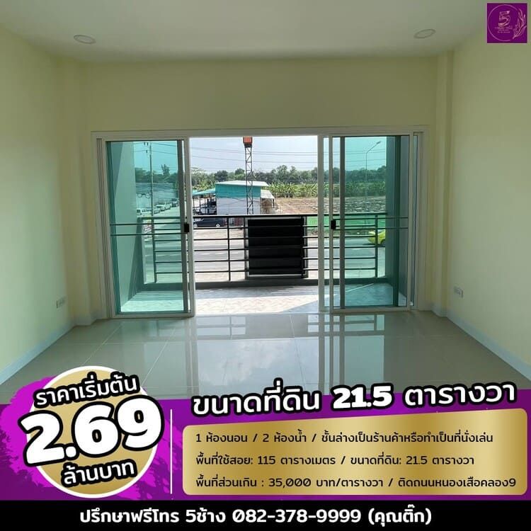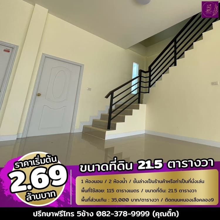 ขายทาวน์โฮม 2 ชั้น ติดถนนใหญ่ หนองเสือคลอง 9 ปทุมธานี สนใจติดต่อ 0823789999