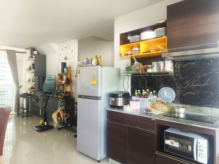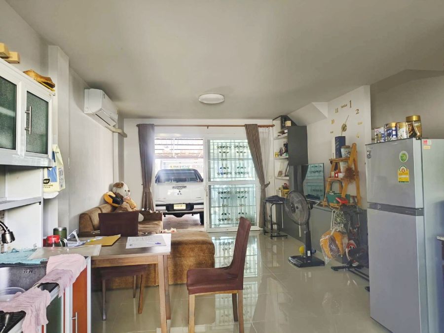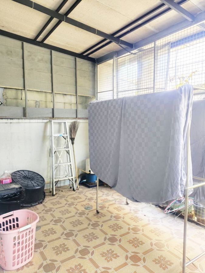 -ชั้นล่าง พื้นปูด้วยแกรนิตโต้แผ่นใหญ่ ฝ้าฉาบเรียบ ต่อเติมโรงจอดรถหน้าบ้าน ต่อเติมหลังคาซักล้างหลังบ้าน มีเคาน์เตอร์ครัว 1 ห้องLiving Room 1 ห้องครัว ของ 1 ห้องน้ำ