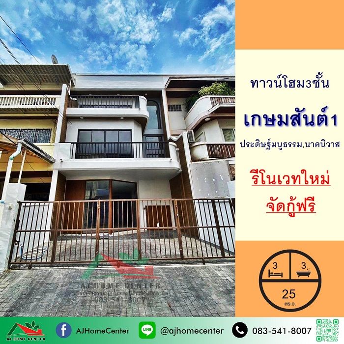 รีโนเวทใหม่ขาย7.49ล้าน ทาวน์โฮม3ชั้น 25ตรว. ม.เกษมสันต์1 ถ.ประดิษฐ์มนูธรรม จัดกู้ฟรี