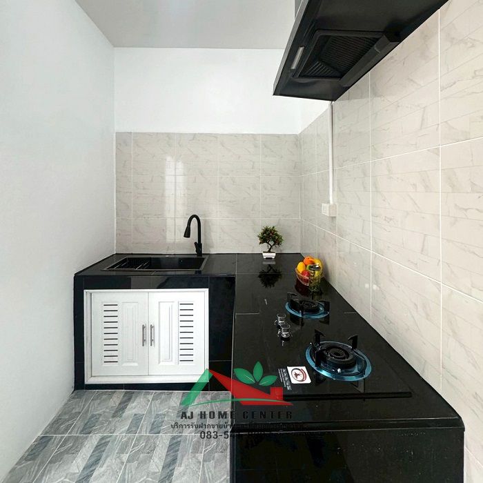 - ติดตั้งเคาเตอร์ครัว+ติดฮู้ดพร้อมเตาแก็ซและซิงค์ล้างจาน, ปั๊มน้ำ, แท็งค์น้ำ