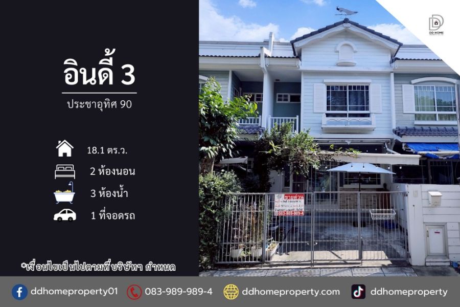 ขายทาวน์เฮ้าส์ หมู่บ้านอินดี้3 ประชาอุทิศ90 (DD002307)