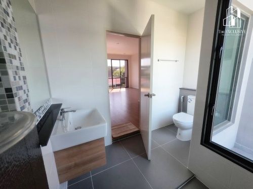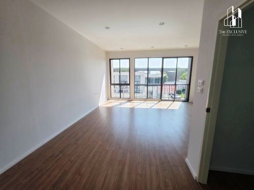 จุดเด่น : บ้านใหม่ 100% ไม่เคยเข้าอยู่ ออกแบบตกแต่งได้ตามใจ , หน้าบ้านกว้าง 5 เมตร ฟังก์ชันเทียบเท่าบ้านเดี่ยว