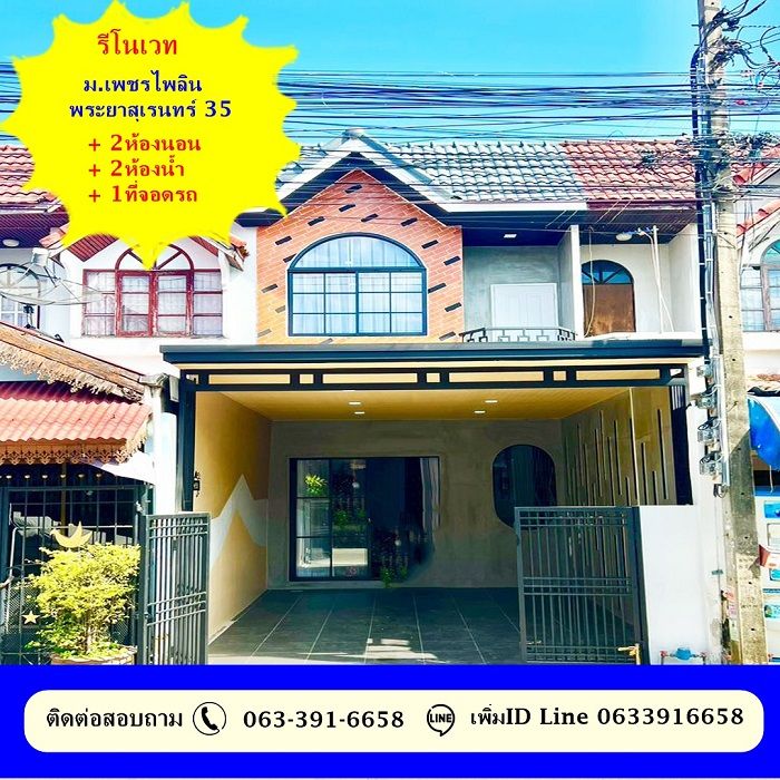 ขายทาวน์เฮ้าส์เนื้อที่ 16 ตารางวา หมู่บ้าน เพชรไพลิน พระยาสุเรนทร์ 35 รีโนเวทใหม่ สวย สอบถาม 063-391-6658