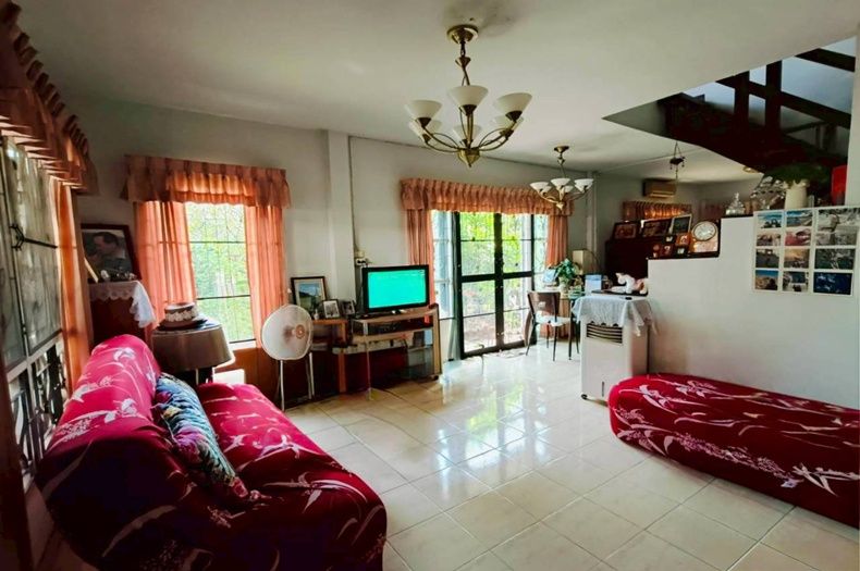 การตกแต่ง : มีพื้นที่ด้านข้างเหลือเยอะ สามารถต่อเติมเพิ่มได้สภาพแวดล้อมเงียบสงบ เหมาะแก่การพักอาศัย อยู่ติดกับโซนบ้านเดี่ยวไม่แออัด มีเฟอร์นิเจอร์บางส่วน ติดมุ้งลวด-เหล็กดัด พร้อมแอร์ พื้นบ้านชั้นบนเป็นปาร์เก้ พื้นบ้านชั้นล่างปูกระเบื้อง ต่อเติมครัว มีปั้มน้ำ แล้วต่อเติมหลังคาโรงจอดรถ