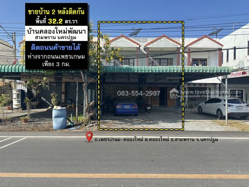 ขายทาวน์เฮ้าส์ 2 ชั้นติดกัน 32.2 ตร.วา หมู่บ้านคลองใหม่พัฒนา ถ.เพชรเกษม-คลองใหม่ สามพราน นครปฐม บ้านสภาพดี มีดาดฟ้า แถมติดถนนค้าขายได้อีก หาบ้าน 2 หลังราคานี้ไม่มีอีกแล้ว ราคา2.7ล้าน ห่างจากถนนเพชรเกษมเพียง 3 กม.