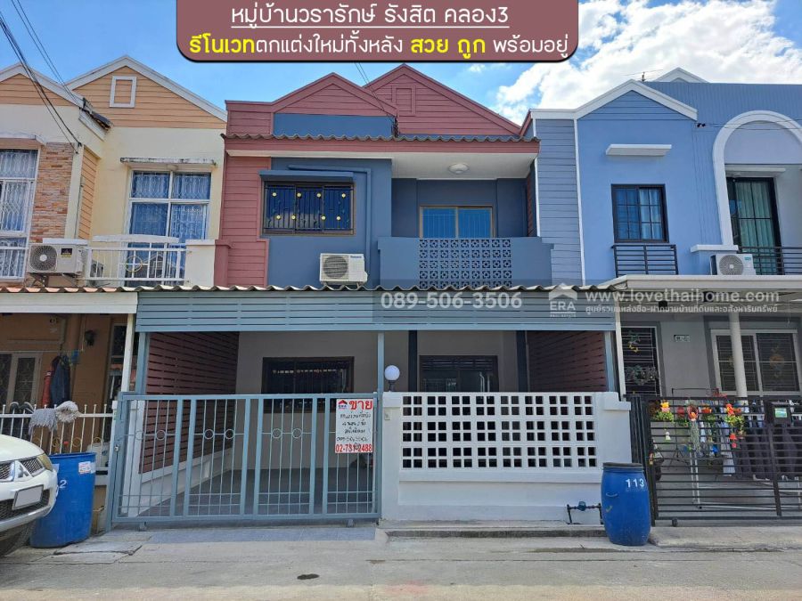 ขายทาวน์เฮ้าส์2ชั้นหมู่บ้านวรารักษ์ รังสิต คลอง3 พื้นที่ 20.1 ตรว. ราคา 1.69 ล้านบาท ติดถนนใหญ่ ซอยแรกหน้าหมู่บ้าน รีโนเวทตกแต่งใหม่ทั้งหลัง สวย ถูก พร้อมอยู่ หันทิศเหนือ ทำเลสวยมาก