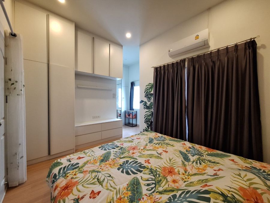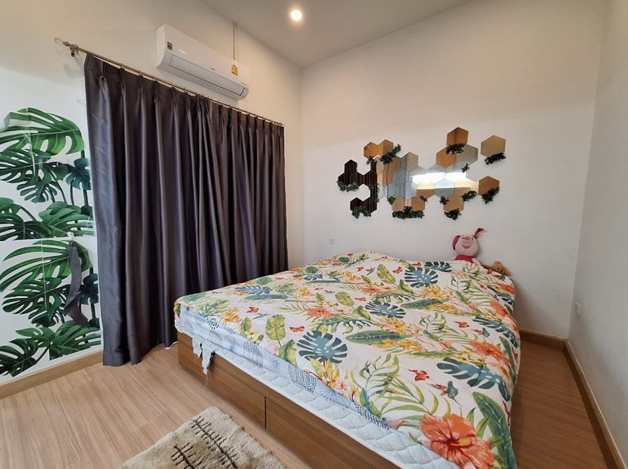โครงการสวยสะดุดตา บ้านน่าอยู่ ดีไซน์น่ารัก เหมาะกับครอบครัวเล็กๆ เงียบสงบ ปลอดภัย บ้านโปร่งโล่งสบาย เพดานสูง หน้าบ้านหันไปทางทิศตะวันตกเฉียงใต้ ลมสามารถพัดผ่านเข้าไปในตัวบ้านได้ พื้นชั้นล่างปูด้วยกระเบื้องแกรนิโต้ ชั้นบนเป็นพื้นลามิเนต มีห้องชั้นล่างสำหรับผู้สูงอายุ ต่อเติมห้องครัว มีเคาน์เตอร์ครัว, บิ้วอินตู้เก็บของ และบิ้วอินตู้เสื้อผ้า ห้องน้ำแยกพื้นที่ส่วนที่แห้งและส่วนเปียก ห้องนอนใหญ่มีกั้นเป็น Walk-in Closet ห้องน้ำในตัว มีระเบียงหน้าบ้าน ต่อเติมหลังคาโรงจอดรถ
