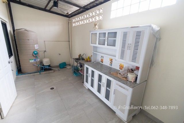 • ครัวเปิดโล่ง: ต่อเติมด้านหลังแบบ Open Air เน้นการระบายอากาศและแสงสว่าง เหมาะกับการใช้งานจริง