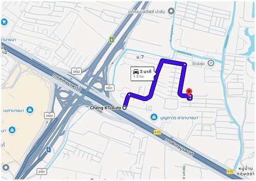 - เข้าทาง ซ.วัดสลุด ทางเขาติดกับบุญถาวร สาขาบางนา