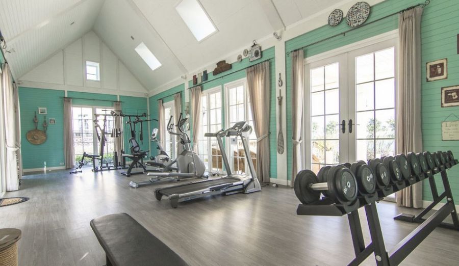 ● ห้องออกกาลังกายมีบาร์ดัมเบล มีลู่วิ่ง เครื่องวิ่ง เครื่องถีบจักรยาน เครื่องเพาะกล้าม