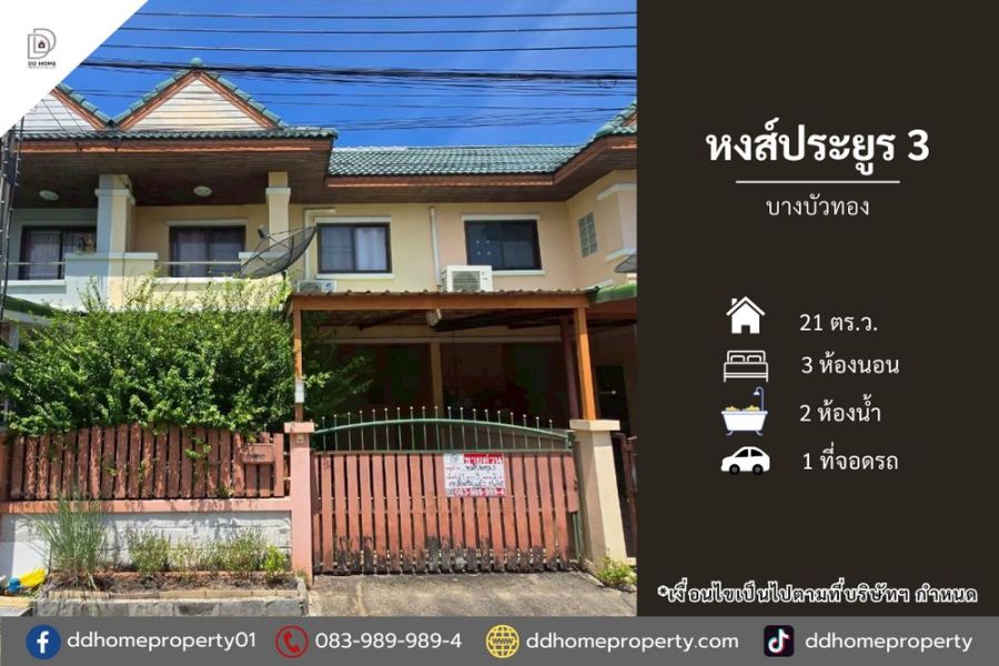 ขายทาวน์เฮ้าส์ หมู่บ้านหงส์ประยูร3 บางบัวทอง (DD002359)
