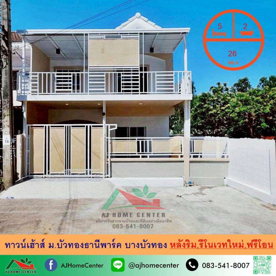 ขายทาวน์เฮ้าส์26ตรว. หลังริม ม.บัวทองธานีพาร์ค บางบัวทอง รีโนเวทใหม่ ฟรีค่าโอน