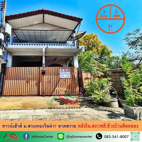 ขายถูก ทาวน์เฮ้าส์31ตรว. หลังริม ม.สวนทองวิลล่า7 ลาดสวาย สภาพดีพร้อมอยู่ ข้างบ้านติดคลอง