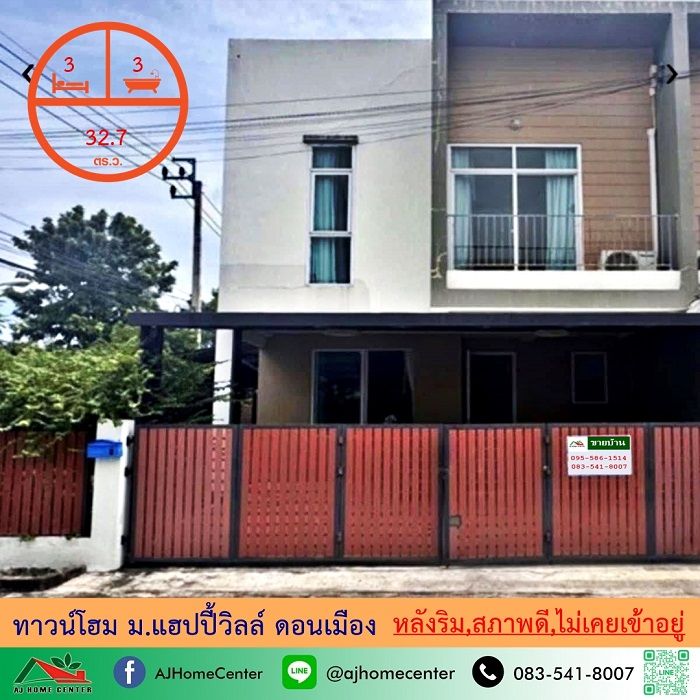 ขายทาวน์โฮม2ชั้น 32.7ตรว. หลังริม ม.แฮปปี้วิลล์ ดอนเมือง สภาพดี ไม่เคยเข้าอยู่ ราคาพร้อมคุย