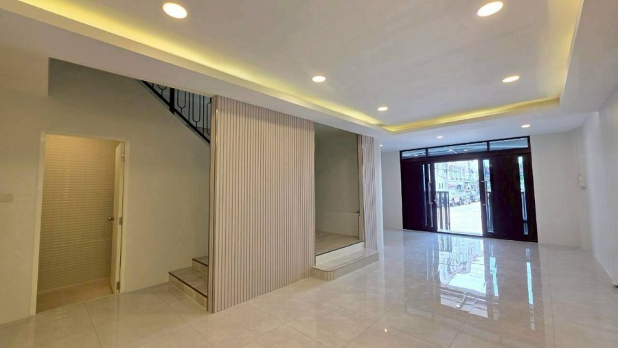 - ชั้น 1 พื้นปูด้วยกระเบื้องแผ่นใหญ่ 1 ห้องโถง 1 ห้องน้ำ 1 ห้องเก็บของ 1 ห้องครัว ฝ้าซ้อนไฟสวยหรู บิ้วอินเคาร์เตอร์ไว้แล้ว มีประตูข้างตึกสามารถออกได้ สะดวกกับการขนของเข้าออก