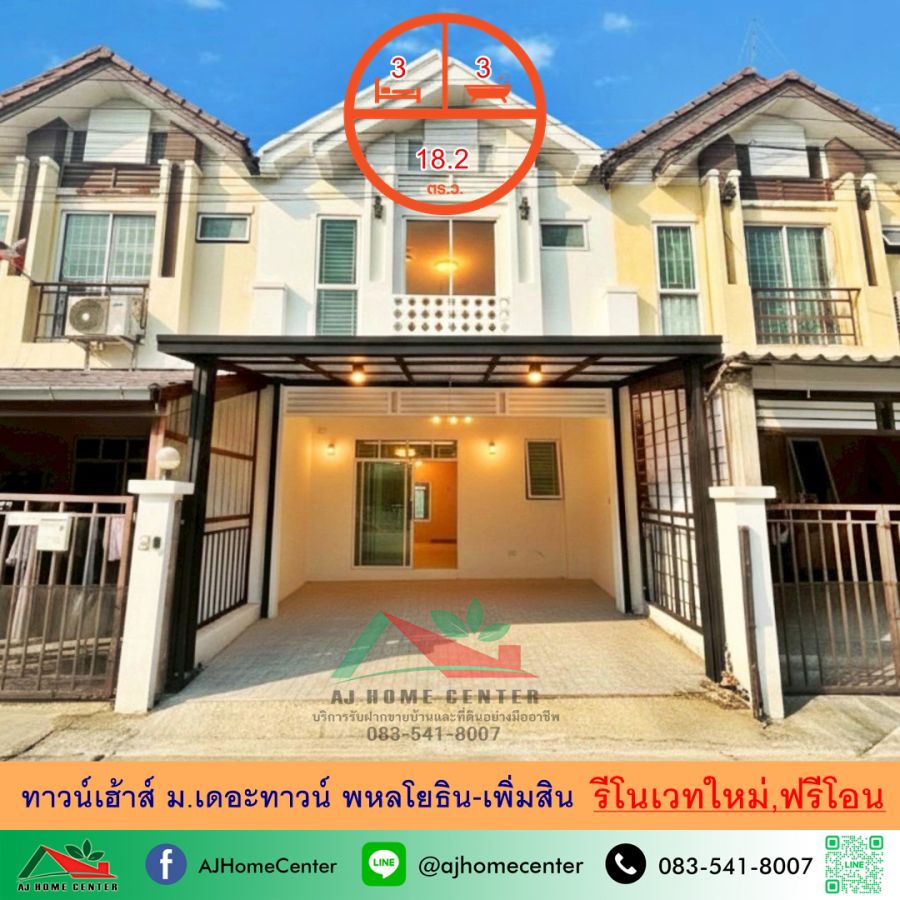 ขายทาวน์เฮ้าส์18.2ตรว. ม.เดอะทาวน์ พหลโยธิน-เพิ่มสิน 3นอน3น้ำ รีโนเวทใหม่ ฟรีค่าโอน