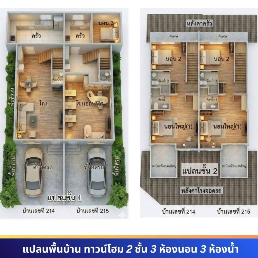 - 3 ห้องนอน 3 ห้องน้ำ 1 ห้องนั่งเล่น