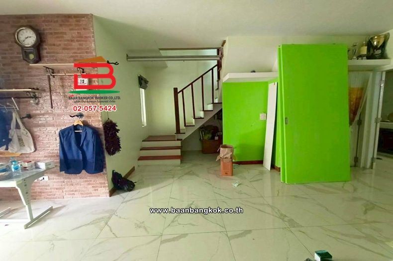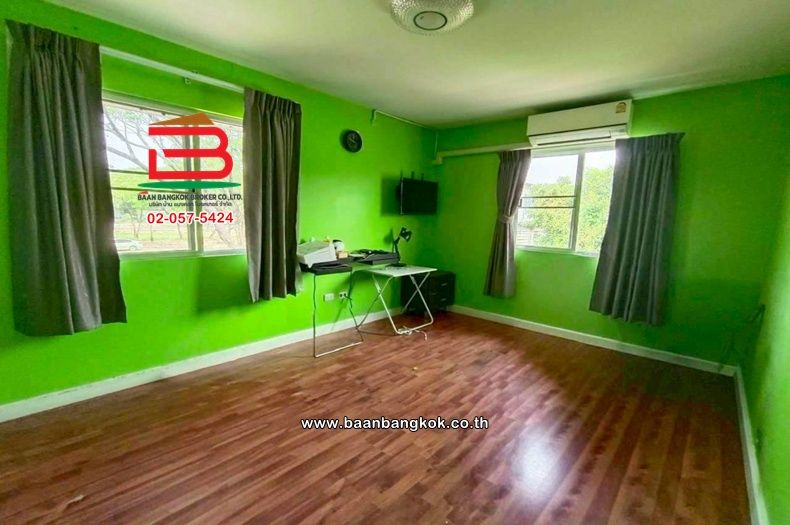การตกแต่ง : สภาพพร้อมอยู่ พื้นล่างปูด้วยกระเบื้อง พื้นบนปูด้วยปาร์เก้ ติดมุ้งลวด-เหล็กดัด ต่อเติมครัว, ต่อเติมโรงจอดรถ พร้อมปั้มน้ำ-แทงค์น้ำ มีพื้นที่เหลือด้านข้าง ทำให้โล่ง ลมโกรกเย็นสบาย