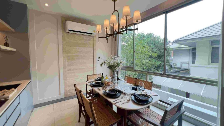 โครงการการออกแบบให้มีช่องลมหรือ Open space กลางบ้าน เพื่อให้ทุกห้องมีหน้าต่าง รับแสงธรรมชาติ และระบายอากาศได้ดี มีพื้นที่พักผ่อน Double Volume พร้อมหน้าต่างกระจกสูง ยิ่งทำให้ดูโปร่งต่างจากทาวน์โฮมทั่วไป