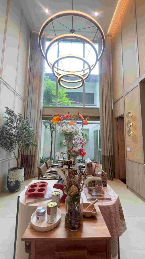 สไตล์บ้าน Urban Luxury ห้องนั่งเล่นเพดานสูง 6.15 เมตร