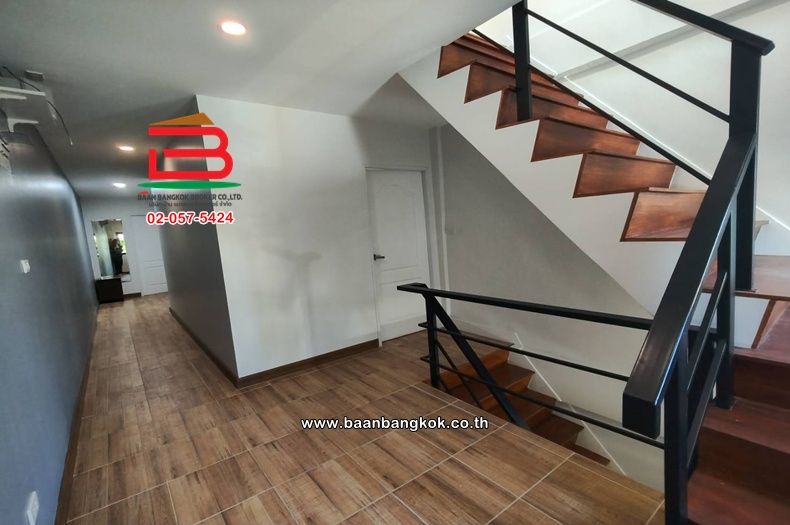 การตกเเต่ง : บ้านรีโนเวทใหม่ เป็นสไตล์มินิมอล ตกเเต่งสวย พื้นบ้านชั้นล่างปูด้วยเเกรนิตโต้ พื้นบ้านชั้นบนปูด้วยลามิเนต Build-in เฟอร์ฯ เเละ Build-in ห้องครัวพร้อมตัวดูดอากาศ ติดเหล็กดัด-มุ้งลวด พร้อมเเอร์ 3 เครื่อง มีปั้มน้ำ-เเท็งค์น้ำ และมีสวนหย่อมในบ้าน