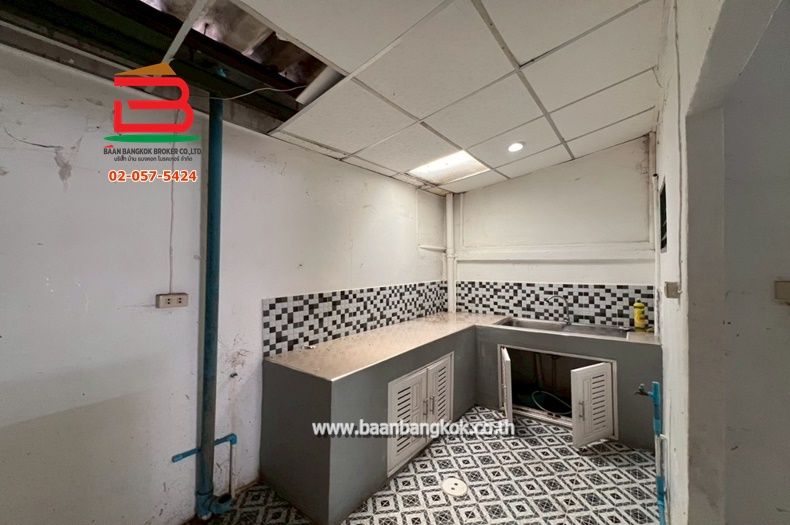 การตกแต่ง : สภาพบ้านต้องปรับปรุง ภายในต่อเติมหลังคาโรงจอดรถพร้อมปูกระเบื้องแกรนิโต้ มีระแนงปิดด้านข้าง 2 ฝั่ง ฝ้าทีบาร์ฉาบเรียบ และต่อเติมเคาท์เตอร์ครัวมีซิงค์ล้างจาน ติดปั้มน้ำ+แท็งค์น้ำ