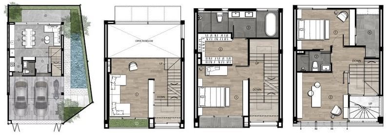 เนื้อที่ 24 ตารางวา พื้นที่ใช้สอย 260 ตารางเมตร จำนวน 3.5 ชั้น 2 ห้องนอน 3 ห้องน้ำ พร้อมดาดฟ้าจอดรถ 2 คัน